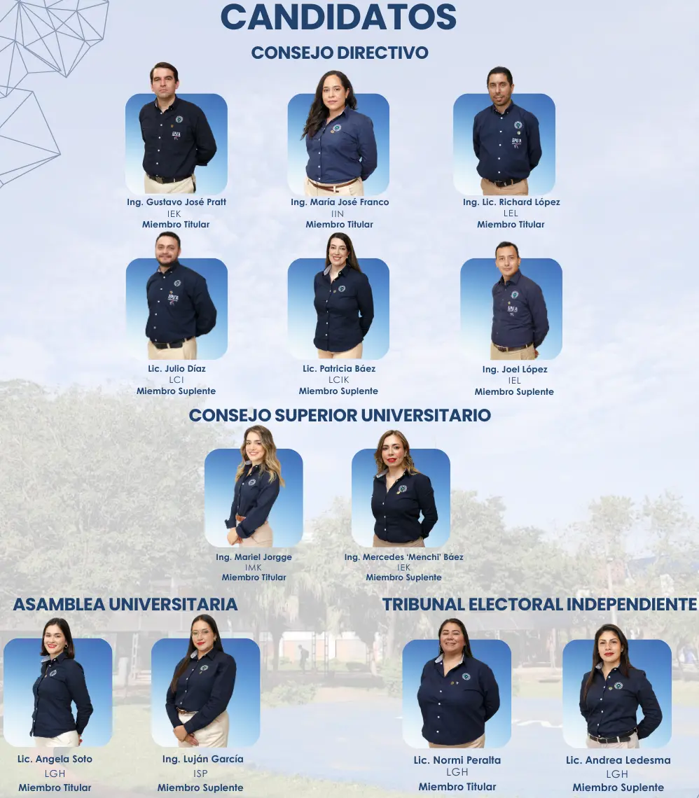 Funcionaria universitaria con 19 años de servicio institucional y reciente graduada en gastronomía. Su extensa experiencia administrativa y vocación de servicio la posicionan como garante de procesos electorales transparentes, enfocándose en crear oportunidades laborales y formación continua para graduados.